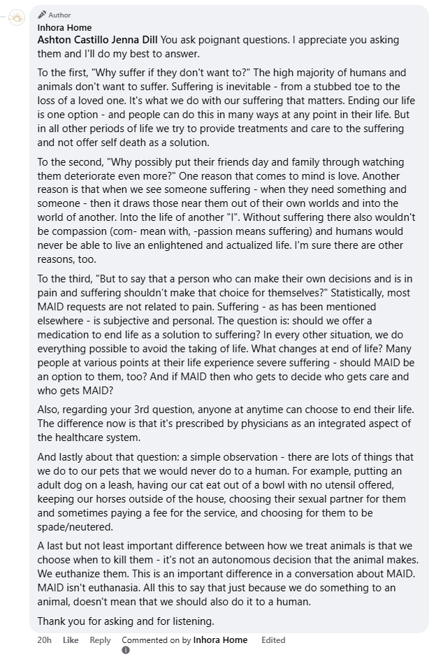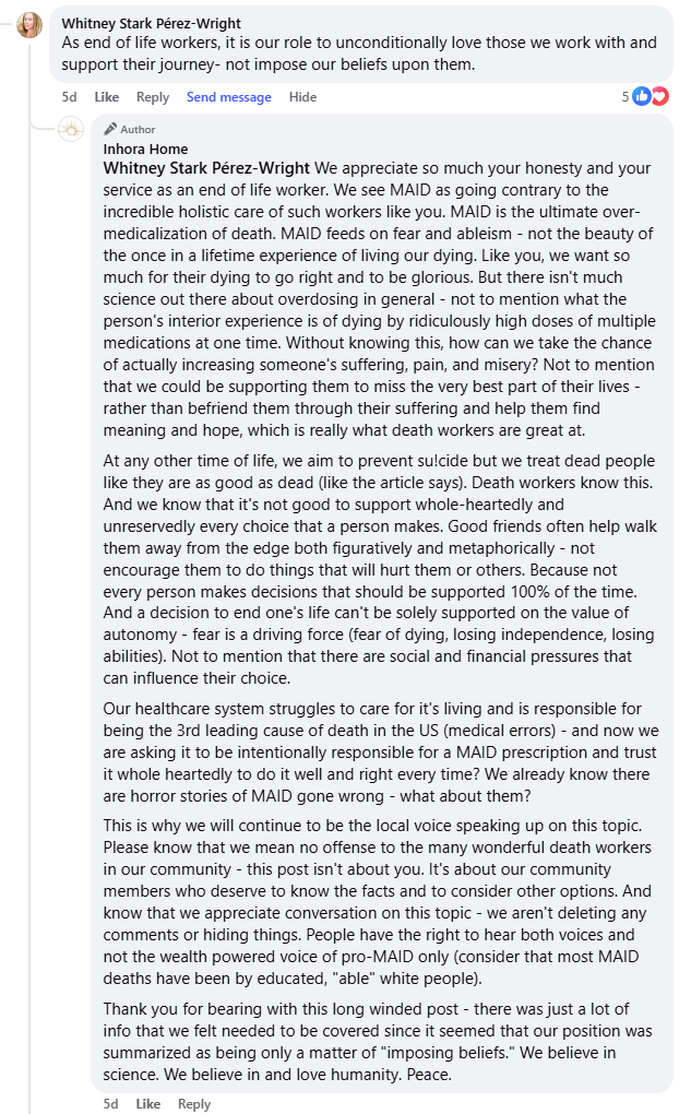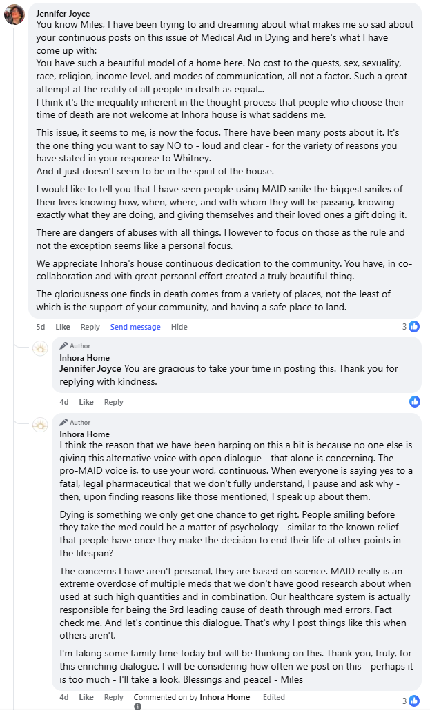 This turned out to be one of our most viewed posts. We were a bit surprised by this. Looking back though, we shouldn’t have been. Pop culture and mainstream media are saying the same things about how wonderful MAID is - but here we are posting an alternative, unpopular view. We feel it’s a loving duty to let people hear this voice instead of going with the flow and primarily conversing with those who think the same way.