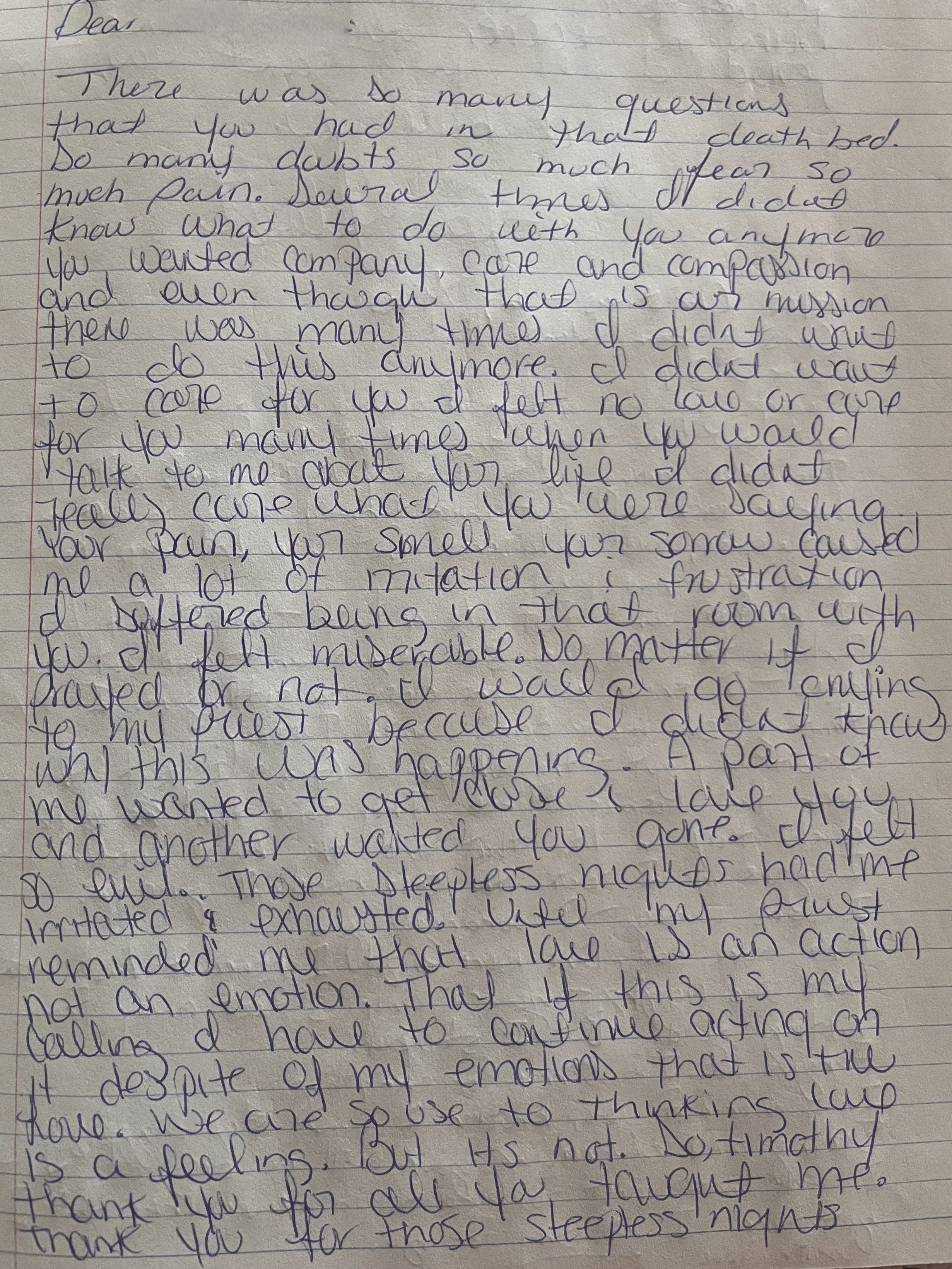 There was so many questions and many doubts in that death bed. So much pain. Several times I did not know what to do with you anymore. You wanted company, care and compassion and even though that is our mission there was many times I didn't want to do this anymore.